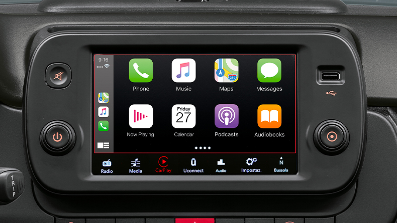 Amusez-vous à bord de votre Panda Cross. Grâce à la compatibilité avec Apple CarPlay et Android Auto, vous pouvez connecter votre téléphone et profiter de la bande-son parfaite pour votre trajet !